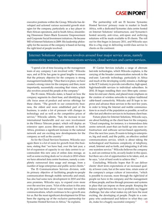 3) Managing Director Derek Wilcocks discusses IS's focus on strong leadership and people. Under his leadership, IS has expanded services, attracted more enterprise clients, and formed new partnerships to deliver advanced technologies like cloud computing and security solutions.