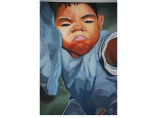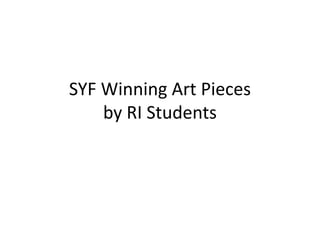 This document summarizes three winning art pieces from a student art competition in the Republic of Singapore (RI). The first is a photograph titled "Paradoxically" showing a unique angle of dilapidated buildings. The second is a painting called "Return to Innocence" depicting tension between uplifting and degrading forces on Earth. The third piece is a painting named "Reward" exploring how rewards motivate behavior, using the example of a baby only agreeing to bathe for a bottle of milk. Minimum bids for the pieces range from $500 to $800.