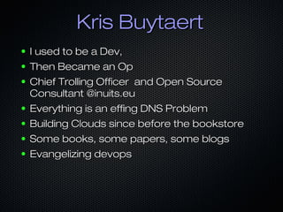 The document discusses continuous delivery and DevOps practices, emphasizing the importance of automating deployment and infrastructure management to support rapid and consistent software delivery. It advocates for treating configuration as code, enabling collaborative workflows, and integrating continuous integration tools to enhance efficiency and reliability. The insights shared highlight the shift towards automation and the need for teams to adopt best practices in monitoring and deployment processes.