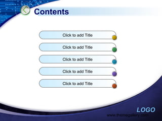 The document is a PowerPoint template from www.themegallery.com that contains various slide layouts that can be customized with text, including titles, diagrams, tables, and charts. The template provides a consistent branding element with the company logo and URL appearing on every slide. Users can edit the content of the slides by adding or modifying text, while maintaining a uniform template across all slides in the presentation.