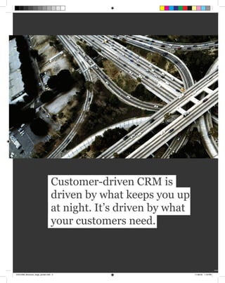 The document discusses a customer relationship management (CRM) solution from CDC Software that integrates technologies to help companies understand customer needs and buying patterns. The CDC Pivotal CRM matches business strategies to technologies, resulting in increased market share, improved customer satisfaction, and higher retention rates. It allows companies to build outward from customer needs and automate routine tasks to better serve customers.