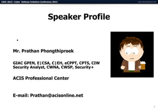 The document summarizes a presentation on advanced mobile penetration testing. It discusses attacking three surfaces: the client software on mobile devices, the communications channel, and server-side infrastructure. It provides examples of exploiting iOS and Android applications, such as decompiling code, intercepting traffic with proxies, and accessing embedded data and databases. The presentation emphasizes fast, hands-on techniques and tools for assessing mobile application security.
