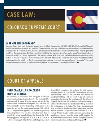 The document summarizes recent case law updates from the Colorado Supreme Court and Court of Appeals in 3 cases: