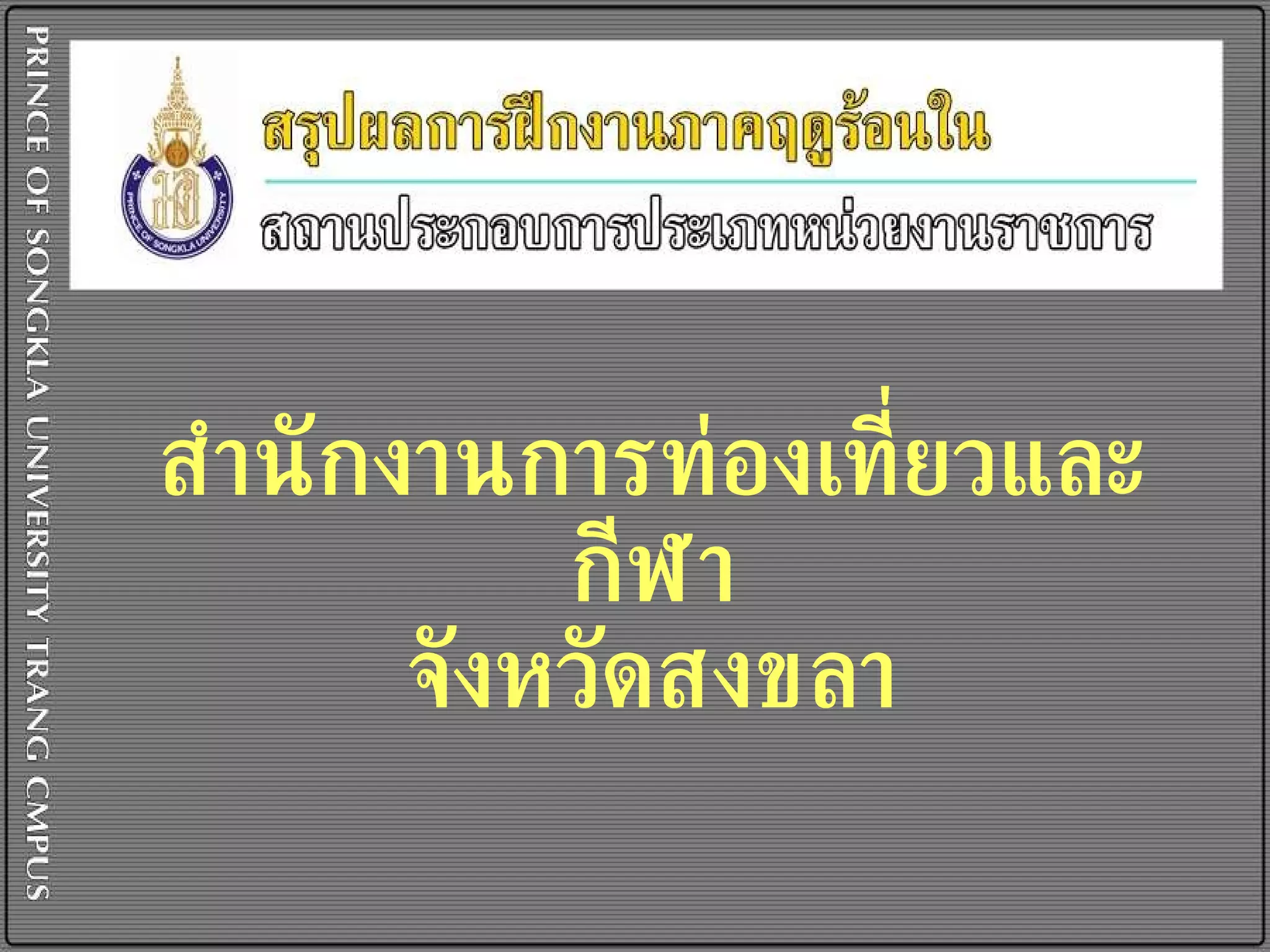 ภาระหน้าที่ที่ได้รับมอบหมาย การต้อนรับผู้มาติดต่อสำนักงาน การรับโทรศัพท์ การส่ง - รับแฟ็กซ์เอกสารทางราชการ ลงรับหนังสือราชการเกี่ยวกับการท่องเที่ยว กีฬาและเอกสารสำคัญ ตรวจสอบข้อมูลเอกสารการท่องเที่ยวของสำนักงาน พิมพ์เอกสารสำคัญเช่น หนังสือราชการ หนังสือเชิญ บันทึกรายงานการประชุม ออกนอกพื้นที่ - ช่วยงานการแข่งขันกีฬาวิ่งผลัดอ่าวไทยสู่อันดามันสงขลา - สตูล การทดสอบสมรรถภาพร่างการ ณ เทศบาลตำบลเขารูปช้างและโรงเรียนบ้านป่างาม อำเภอจะนะ อื่นๆ เช่น ถอดเทปการประชุม สรุปเนื้อหาการประชุม - 4.