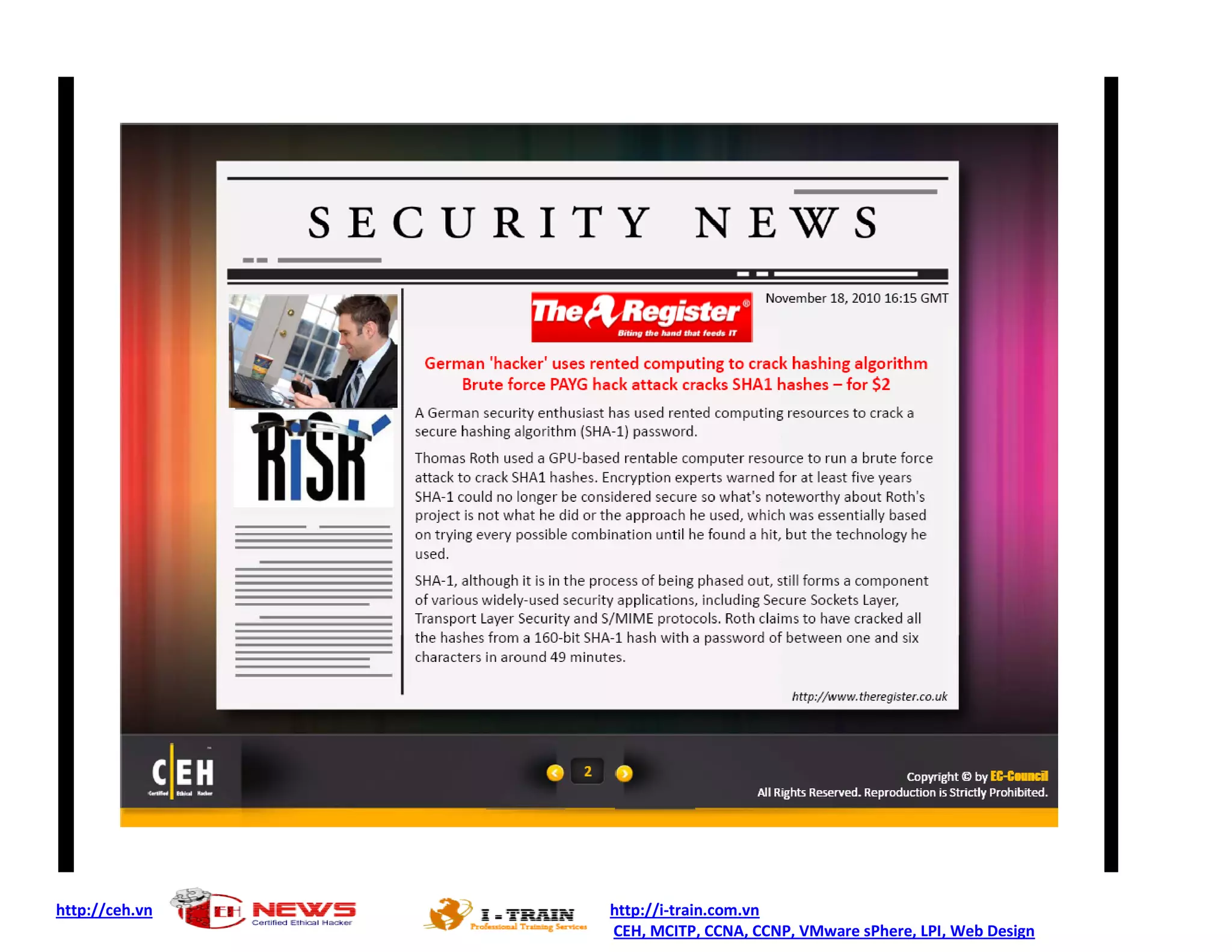 The document repeatedly lists two website URLs (http://ceh.vn and http://i-train.com.vn) and certifications for training including CEH, MCITP, CCNA, CCNP, VMware sPhere, LPI, and Web Design. It appears to be advertising training and certification courses available at the two listed websites.