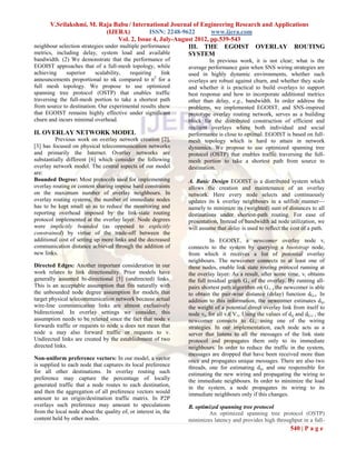 This document summarizes an research paper that proposes a new approach called Selfish Neighbor Selection (SNS) for optimizing overlay networks. SNS limits the number of neighbors for each peer to reduce overhead. It also considers both cooperative and selfish behavior among peers. The paper describes EGOIST, a prototype overlay routing system implemented based on SNS that expresses each node's "best response" wiring strategy as a k-median problem. EGOIST evaluations on PlanetLab show it performs better than heuristic overlays on metrics like delay, bandwidth, and node utilization. The paper also proposes using an Optimized Spanning Tree Protocol to allow traffic on the full-mesh portion to take shortest paths, and describes how EGOIST
