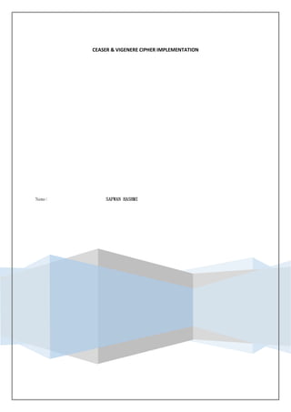 This document describes implementations of the Ceaser and Vigenere ciphers. It includes: