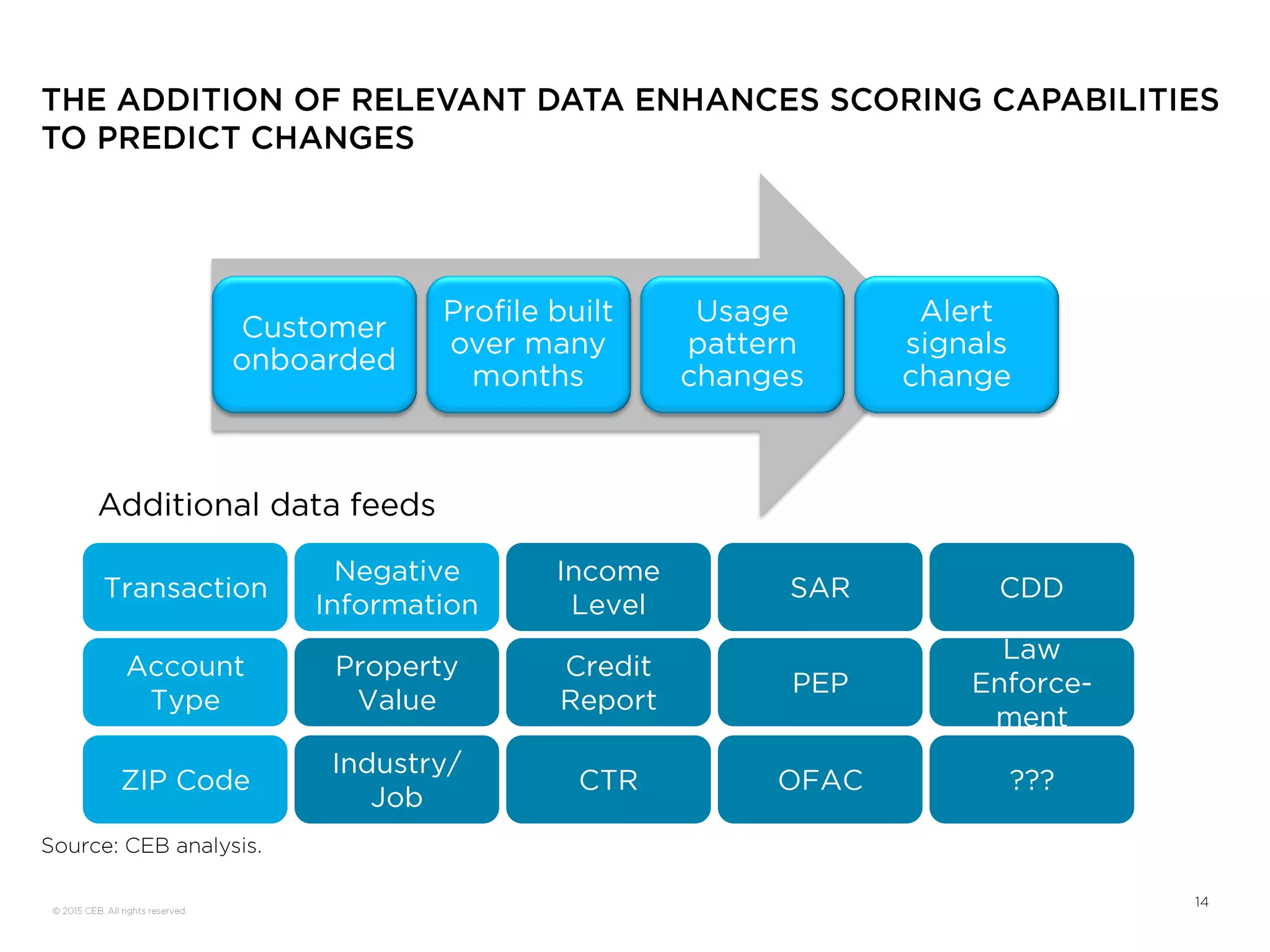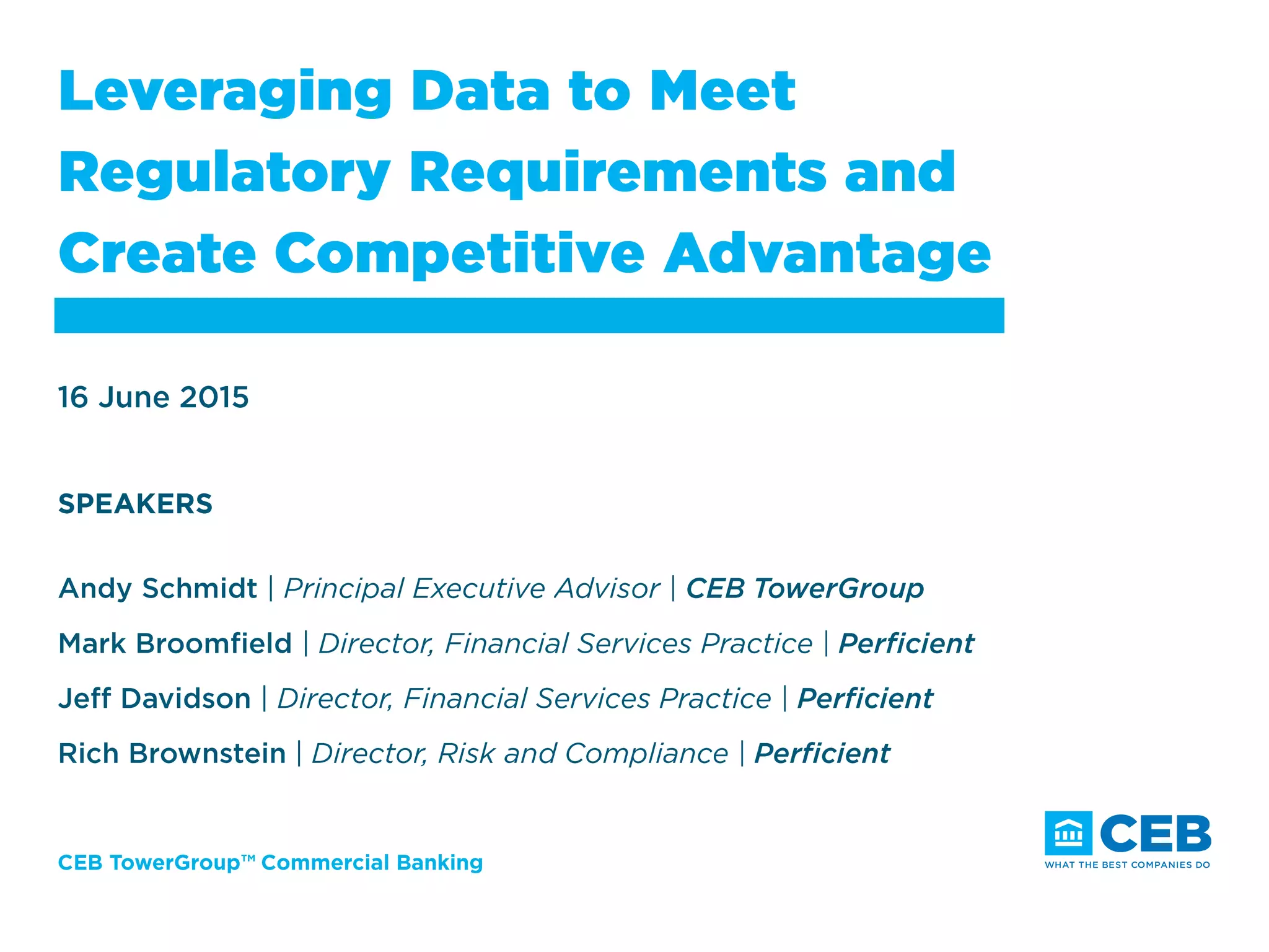 The document discusses how financial institutions can turn regulatory compliance data into opportunities for competitive advantage. It provides examples of how anti-money laundering (AML) and customer data used for compliance can also power initiatives like cross-selling, improving the customer experience, and strategic capital planning. The document recommends a balanced approach between meeting regulatory requirements and building a flexible data architecture that allows data to be reused across business units.