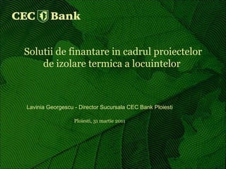 Documentul detaliază soluțiile de finanțare pentru proiectele de izolare termică a locuințelor, inclusiv reglementările legislative și mecanismele de creditare. Se subliniază contribuțiile financiare ale statului și avantajele reabilitării energetice, cum ar fi reducerea costurilor de întreținere și îmbunătățirea aspectului urban. Pașii pentru obținerea creditului sunt clar definiți, incluzând evaluări tehnice și proceduri de selecție pentru contractanți.