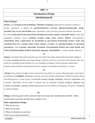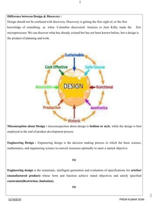 Engineering design can be original, adaptive, for redesign, selection of components, industrial, product, interface, or visual - aiming to solve problems creatively within constraints. Good design is user-centered and satisfies both functional and aesthetic requirements.