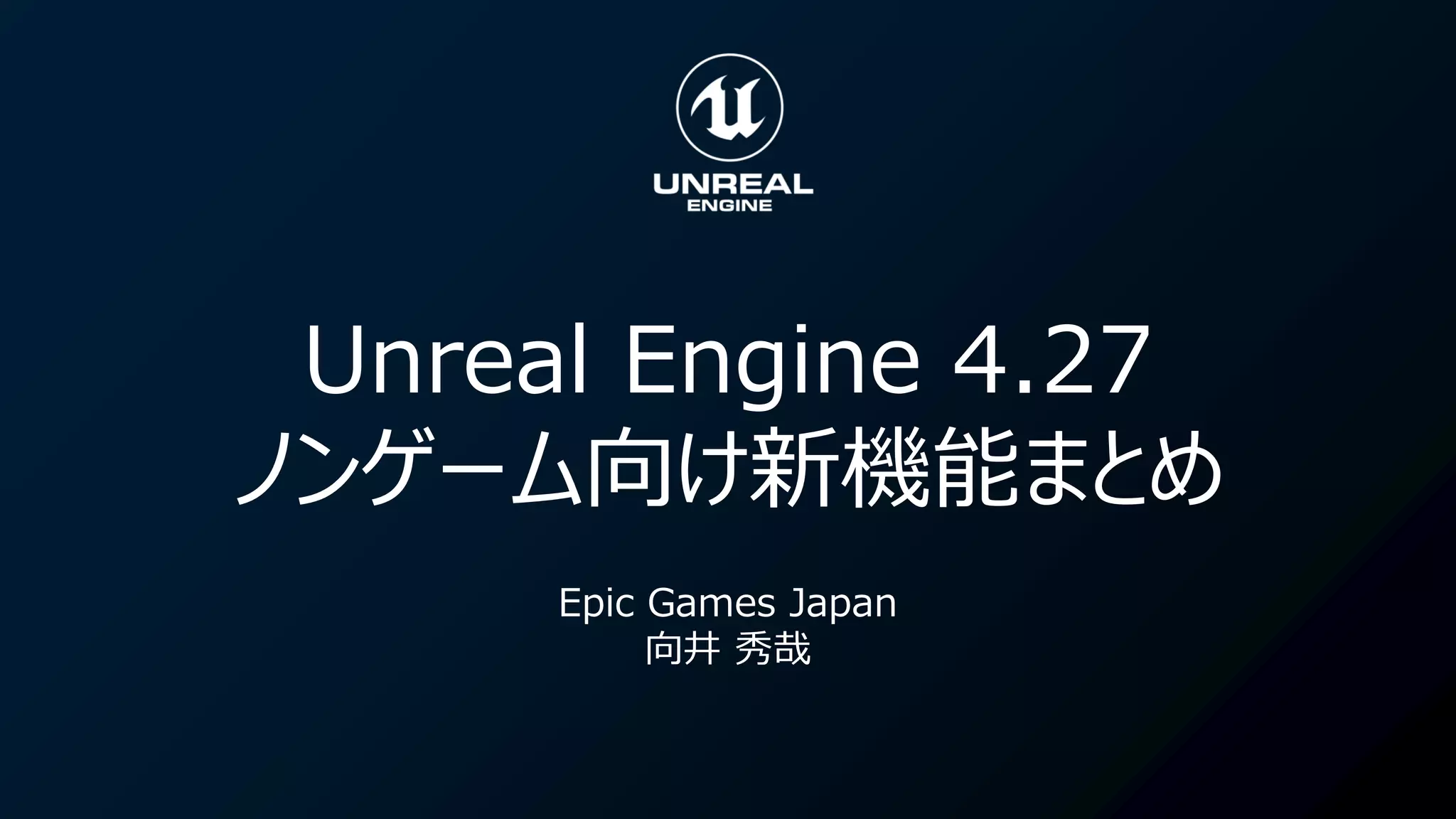 2021年8月26日に開催されたCEDEC2021の講演資料です。Unreal Engine 4 最後のバージョンとなる4.27のノンゲーム向け機能をご紹介しています。 https://cedec.cesa.or.jp/2021/session/detail/s60c838025efcc