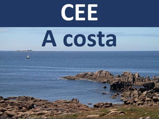O litoral do concello de Cee ten tres partes diferenciadas e separadas, dúas protexidas na ría de Corcubión e no seo de Fisterra, e outra exposta na costa da Morte. A de maior lonxitude e a da ría de Corcubión da que ocupa o fondo e toda a banda esquerda que se prolonga cara a enseada do Ézaro. No seo de Fisterra hai un pequeno tramo de cantís e a praia de Estorde e na costa exterior (Costa da Morte) unha sucesión de cantís e coídos e a ría de Lires.