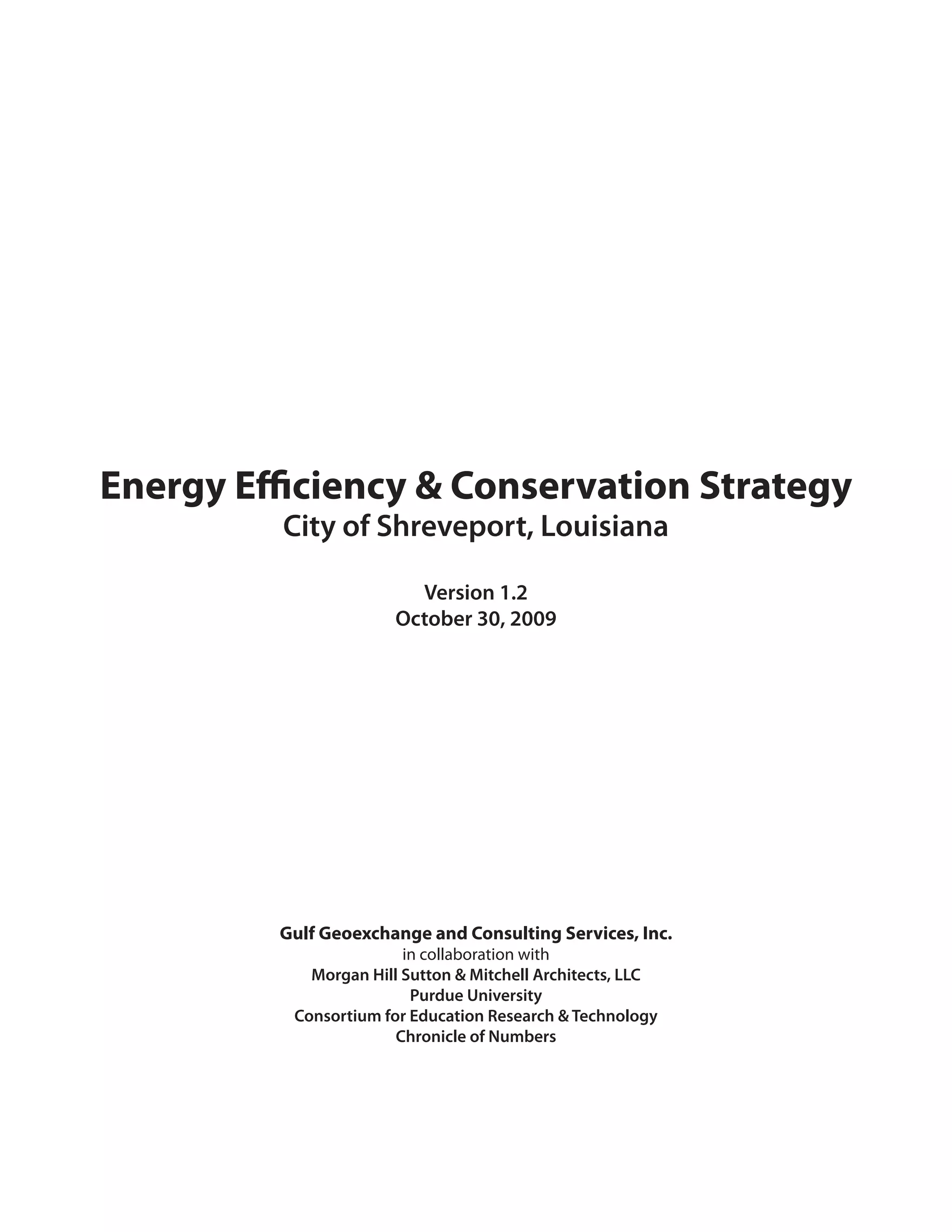 The document outlines a comprehensive energy efficiency and conservation plan (CECP) for Shreveport, Louisiana, aiming to guide long-term decision-making and investments towards sustainability. The plan focuses on job creation, energy savings, greenhouse gas reduction, and renewable energy production while promoting community involvement through strategic partnerships and local capacity building. It emphasizes a 'strategic doing' methodology to foster collaborative actions and continuous improvement within the community.
