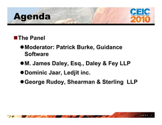The panel discussed international eDiscovery issues including differing privacy standards and blocking statutes across jurisdictions, trends toward increased privacy protections in the US and Europe, and practical challenges of cross-border eDiscovery such as dealing with non-English languages and legacy IT systems. Proportionality, risk mitigation strategies, and continued communication were presented as ways to address these challenges.