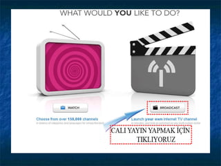 AVANTAJLARI Sadece videoizlek istiyenler için “Watch” aynı zamanda yayında yapmak isteyenler için “Broadcast” olmak üzere iki farklı üyelik şeklinin bulunması. Çektiği videoyu paylaşmak isteyen insanlar için paylaşım sitesi. Herkesin üye olabileceği ücretsiz bir üyelik versiyonununda bulunması.