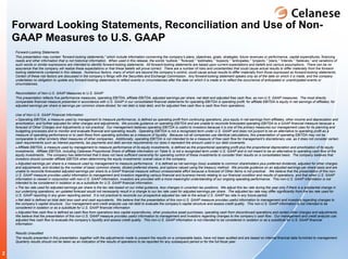 The document summarizes Celanese's 4Q 2008 earnings conference call. It discusses Celanese's 4Q 2008 financial results including a net loss of $152 million compared to an operating profit in 4Q 2007, and an adjusted EPS of ($0.38) compared to $2.77 in 4Q 2007. It also provides highlights for each of Celanese's business segments and discusses the outlook for 2009 including expected continued volume declines.