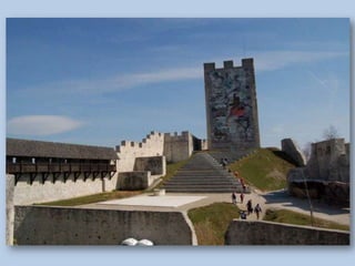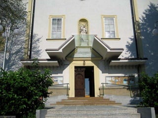 Celje is a town in Slovenia known for its religious and cultural landmarks including St Joseph's Church, St Mary's Church, St Mary's Shrine, the Abbey Church of St Daniel, and the Capuchin Church of St Cecilia. Some of Celje's other notable sights are the National Hall, the People's Savings and Loan Bank, the Slovenian People's Theatre, the Town Hall, Celje Hall, the Old Castle, and the Old Manor House.