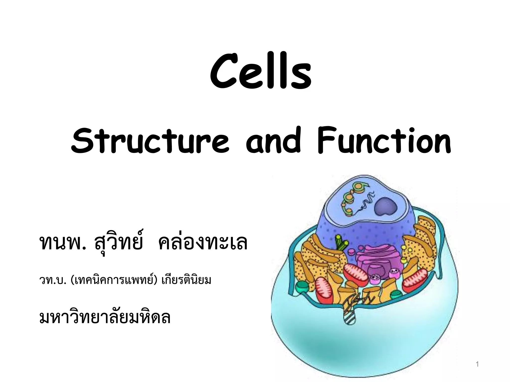 Cells are the basic structural and functional units of all living organisms. There are two main types of cells - prokaryotic cells, which lack a nucleus, and eukaryotic cells, which have a nucleus surrounded by a nuclear envelope. The plasma membrane surrounds the cell and acts as a selectively permeable barrier that regulates what enters and exits the cell. Transport across the membrane can occur through passive diffusion, facilitated diffusion, or active transport processes that require energy. Vesicle transport is also used to move materials within and between cells.