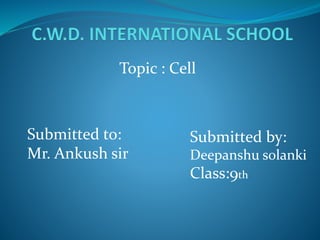 Cell was first discovered in 1665 by Robert Hooke, who observed cork slices under his microscope and saw they resembled a honeycomb structure. There are two main types of cells: prokaryotic and eukaryotic. Prokaryotic cells are smaller and lack organelles, while eukaryotic cells are larger and have organelles like the nucleus. Organisms can also be unicellular, consisting of a single cell, or multicellular, made of many cells. The basic components of cells include the cell membrane, nucleus, cytoplasm, and various organelles that carry out specific functions to keep the cell alive.