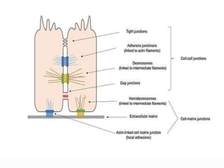 The document discusses cell communication, highlighting intercellular and intracellular signaling mechanisms essential for cellular functions in both unicellular and multicellular organisms. It outlines the three stages of cell communication: reception, transduction, and response, and describes various types of cellular junctions that facilitate cell adhesion and communication, including anchoring, tight, and gap junctions. Additionally, it details modes of signaling, including endocrine, paracrine, autocrine, and synaptic signaling, and explores different types of signaling molecules such as nitric oxide and neurotransmitters.