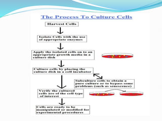 This document provides information on cell culture techniques. It discusses: