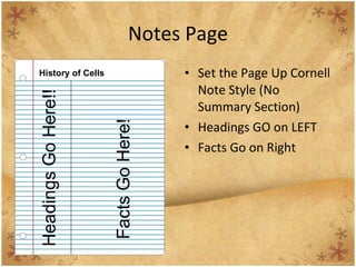The document summarizes the history and key discoveries related to cells, including: