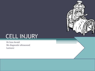 Cell injury can occur when cells encounter physiological stresses or pathologic stimuli that exceed their adaptive capacity. There are several potential mechanisms of cell injury, including impaired cell membrane function, decreased ATP production, genetic alterations, and metabolic derangements. Free radicals can damage cell membranes through lipid peroxidation and degradation of proteins and nucleic acids. Loss of calcium homeostasis and an increase in intracellular calcium can also impair cell membrane function. Decreased ATP production during hypoxia or hypoglycemia compromises important cellular processes. Genetic alterations from toxins, radiation, or viruses may disrupt protein and enzyme synthesis. Exposure to toxins can also cause metabolic derangements leading to cell injury.