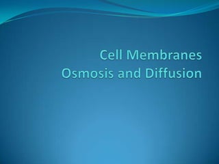 The document discusses cell membranes and the methods of transport across membranes. It covers four main methods: