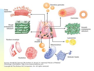 This document summarizes a seminar on cell organelles presented by Dr. Simi M. The seminar covered the major cell organelles including the nucleus, endoplasmic reticulum, Golgi apparatus, mitochondria, lysosomes, peroxisomes, and ribosomes. It described the structure and functions of each organelle, highlighting their roles in processes like protein synthesis, lipid synthesis, cellular respiration, waste disposal, and more. The history of the discovery of each organelle was also briefly outlined.