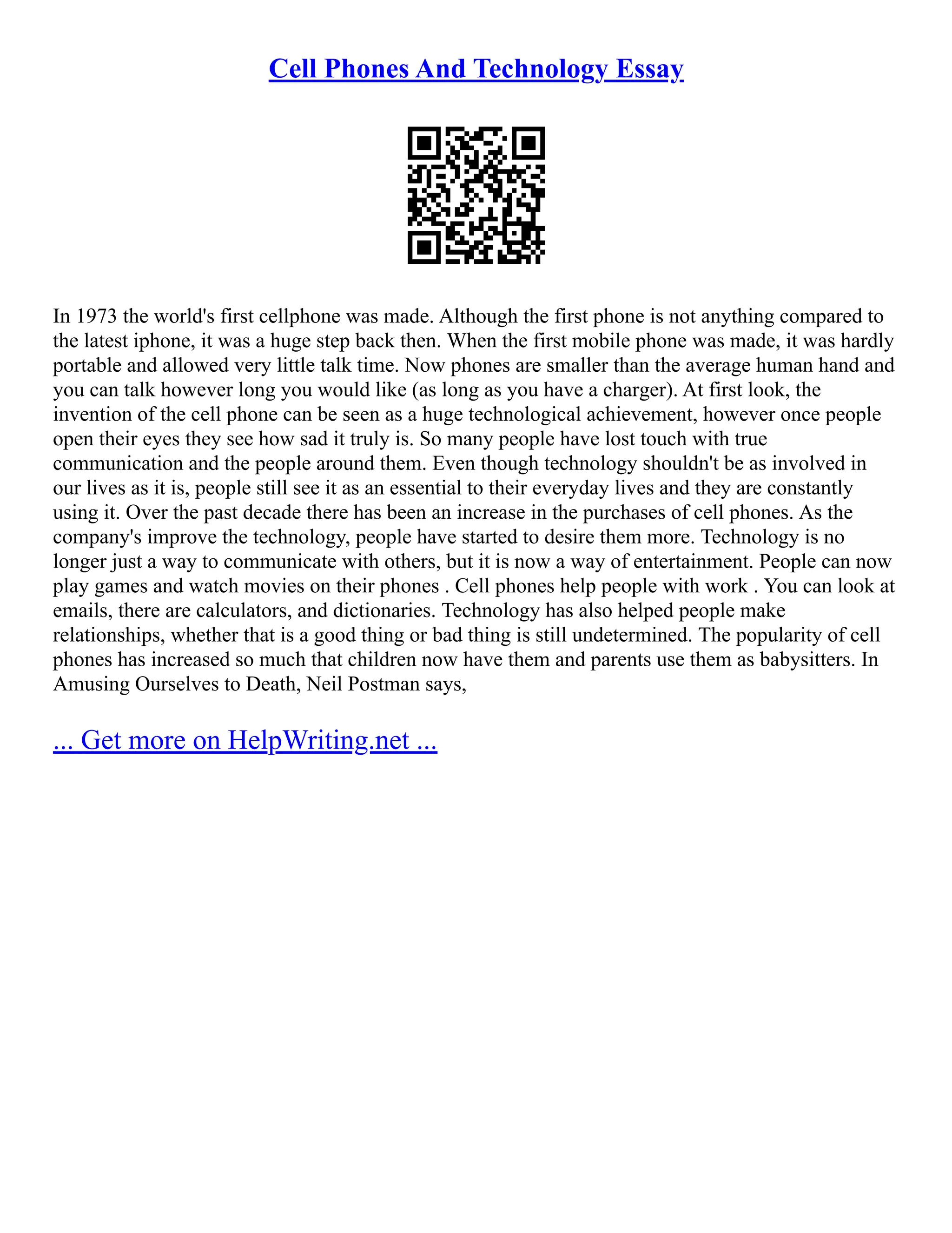This document summarizes an essay about the effects of technology on families. It notes that technology use has increased significantly in recent decades, with 98% of young adults owning cell phones and 85% owning smartphones. While technology provides benefits, it can reduce valuable face-to-face family time. Research shows children now spend 7.5 hours per day looking at screens, up from 5 hours in 1999. The prevalence of social media and texting was also discussed. The essay examines how increasing technology use may impact family relationships and family life.