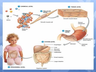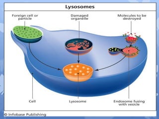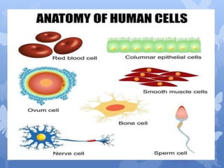 The document discusses the structure and function of human cells. It begins by defining what cells are and that humans are made up of trillions of cells. It then describes the main parts of the cell including the plasma membrane, cytoplasm, nucleus, mitochondria, endoplasmic reticulum, Golgi apparatus, lysosomes, peroxisomes, and microtubules. It explains the role and function of each of these organelle. The document concludes by summarizing that all the organelles work together to keep the cell alive and allow it to perform its specific functions through processes like nutrient intake, waste removal, energy production, and replication.