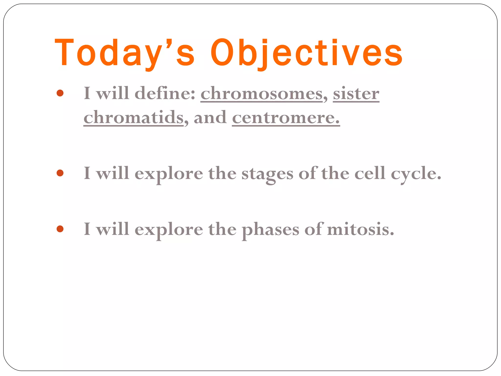 The document defines key terms related to the cell cycle such as chromosomes, sister chromatids, and centromere. It then explains the main stages of the cell cycle as interphase, mitosis, and cytokinesis. Interphase is further broken down into the G1, S, and G2 phases where the cell grows and prepares for division. Mitosis is described as having four phases - prophase, metaphase, anaphase, and telophase - where the cell nucleus divides to produce two daughter cells each with a full set of chromosomes.