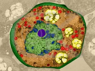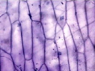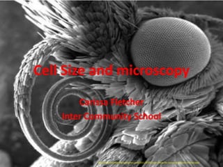 This document compares the relative sizes of various biological structures using the SI unit of length. It states that molecules are about 1 nanometer in size, cell membranes are 10 nanometers thick, viruses are around 100 nanometers, bacteria are 1 micrometer, organelles are generally less than 10 micrometers, plant and animal cells are less than 100 micrometers, and plant cells tend to be larger than animal cells. It also provides a formula for calculating actual size based on known image size and magnification.