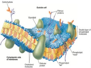 The document provides an overview of cellular structures and their functions, detailing the organization of cells, membranes, organelles, and transport mechanisms. Key topics include the roles of various cellular components such as ribosomes, endoplasmic reticulum, Golgi apparatus, and mitochondria, as well as processes like diffusion, osmosis, active transport, and methods of endocytosis. It outlines the relationship between cell structure and function and emphasizes the importance of each component in maintaining cellular integrity and activity.