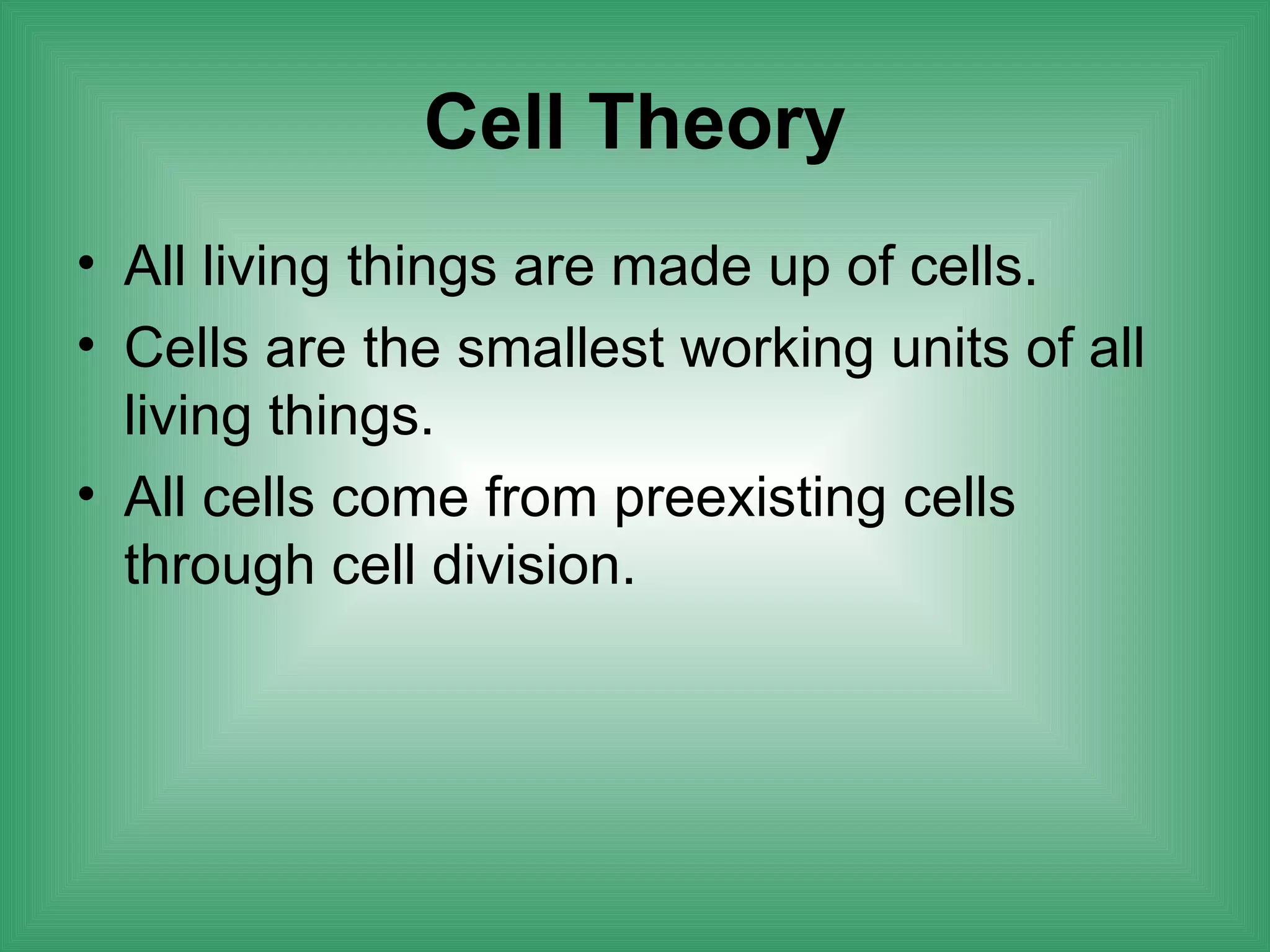 The document discusses the basic structure and function of cells. It outlines cell theory, which states that all living things are made of cells, cells are the basic functional units of life, and new cells are produced from existing cells. The document then describes the key components of cells, including the cell membrane, cell wall, nucleus, organelles like mitochondria and chloroplasts, and differences between prokaryotic and eukaryotic cells. Examples of plant, animal, and bacterial cells are provided with labeled diagrams.