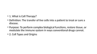 • Definition: The transfer of live cells into a patient to treat or cure a