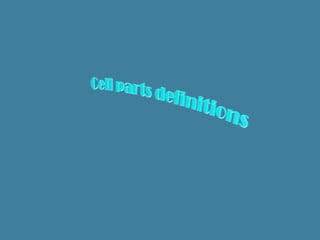 This document discusses cells and their parts. It describes that there are two primary types of cells - eukaryotic and prokaryotic. Key parts of animal cells are identified as the cell membrane, nucleus, mitochondria, ribosomes, endoplasmic reticulum, Golgi apparatus and lysosomes. Plant cells contain similar structures but also have chloroplasts, vacuoles and a cell wall. The nucleus is described as the "brain" of the cell and contains the nucleolus and nuclear membrane. Other organelles like mitochondria, Golgi bodies and peroxisomes perform important functions like breaking down molecules and transporting materials. Pictures of example animal and plant cells are also included.