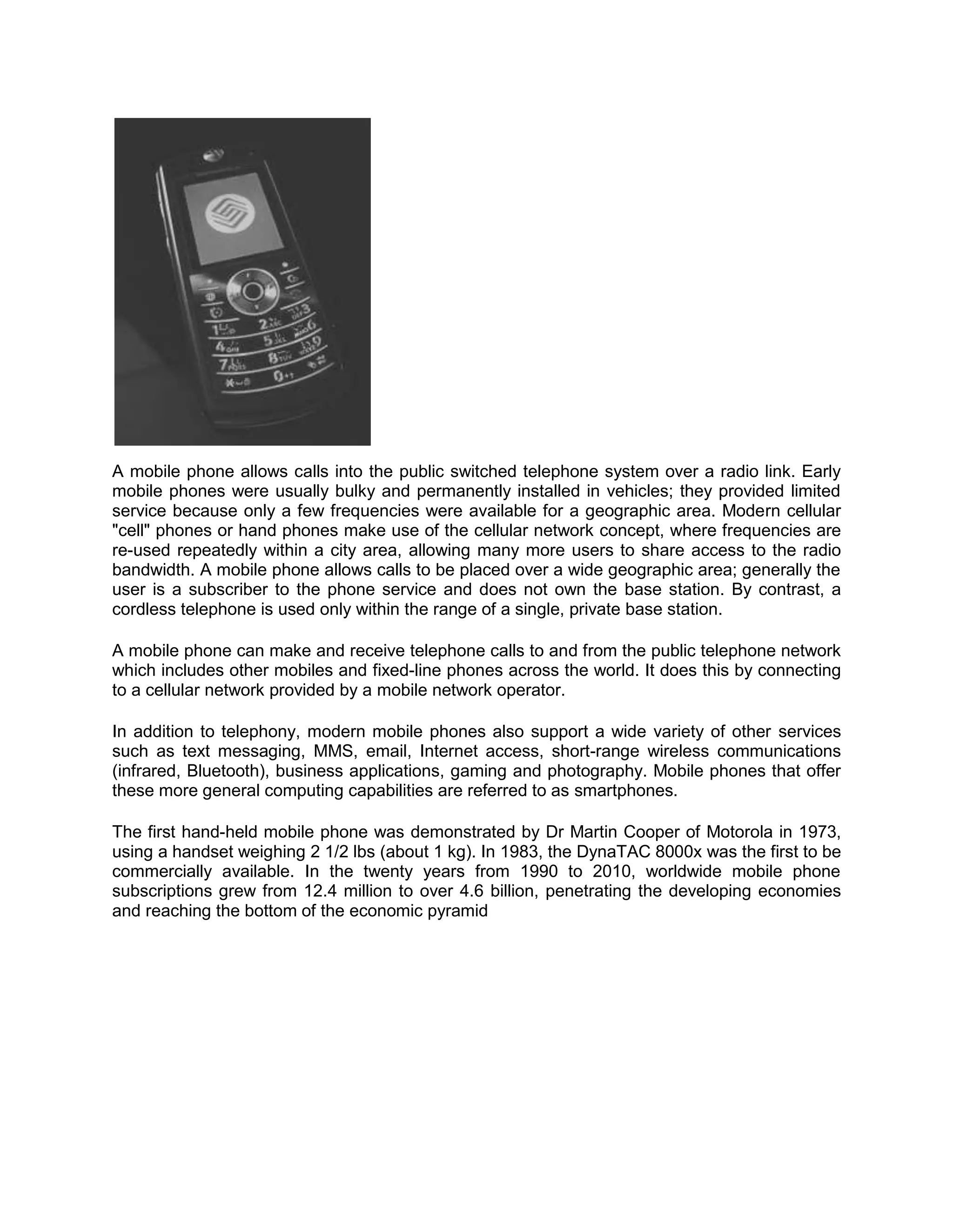 The document discusses cellular technology and mobile phone networks. It provides details on: