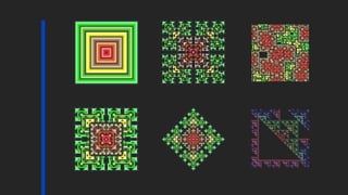The document discusses cellular automata (CA), which consist of a grid of cells in various states influenced by their neighbors and defined rules. It highlights how simple underlying rules can lead to complex emergent behaviors, illustrated by examples such as students' hat-wearing decisions. Additionally, it critiques the limited application of CA models in urban planning due to the absence of demographic and economic forecasting mechanisms.
