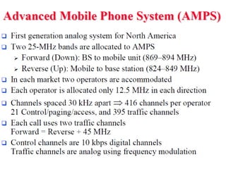 – Analog transmission, primarily speech: AMPS (Advanced Mobile Phone