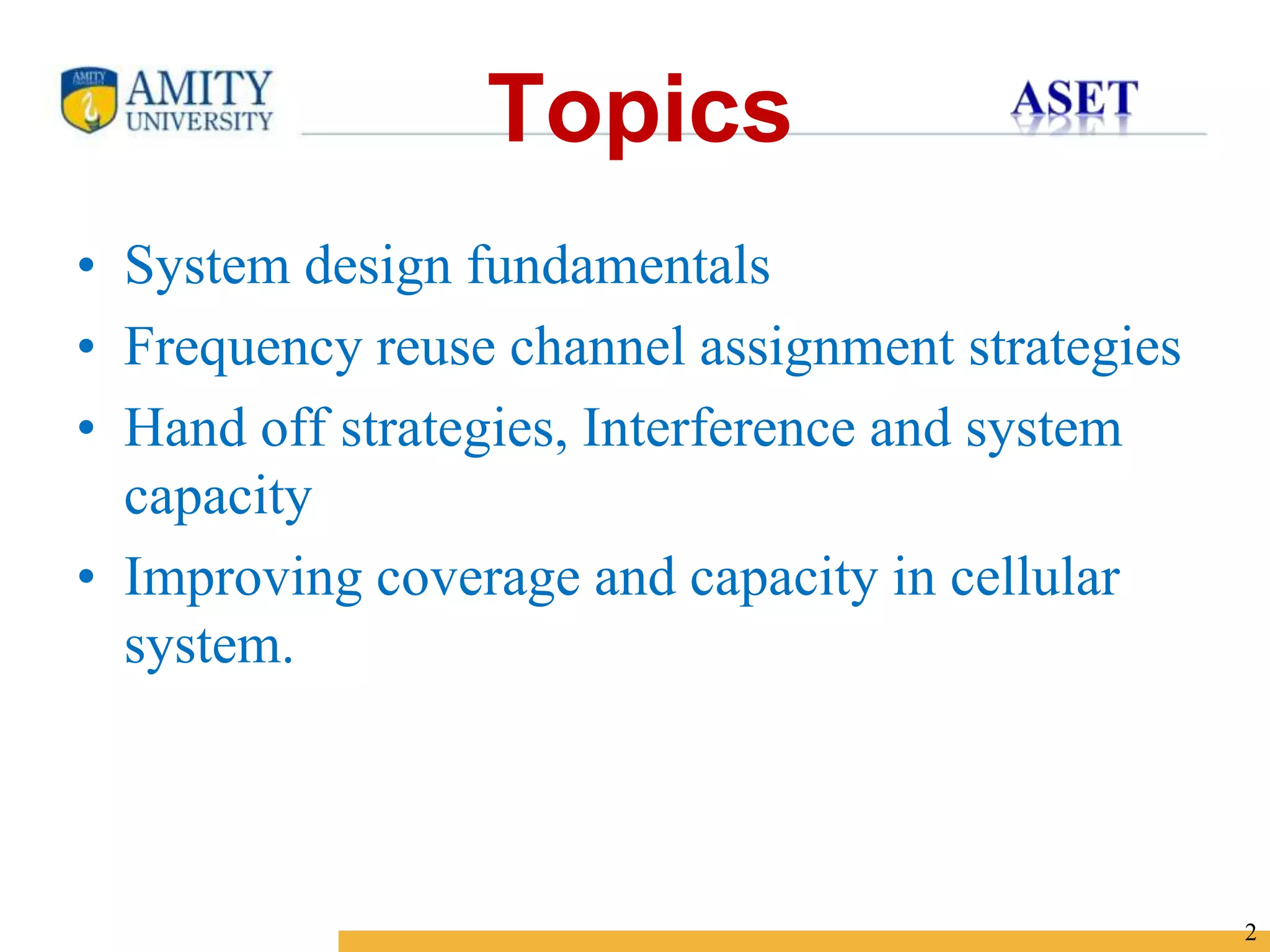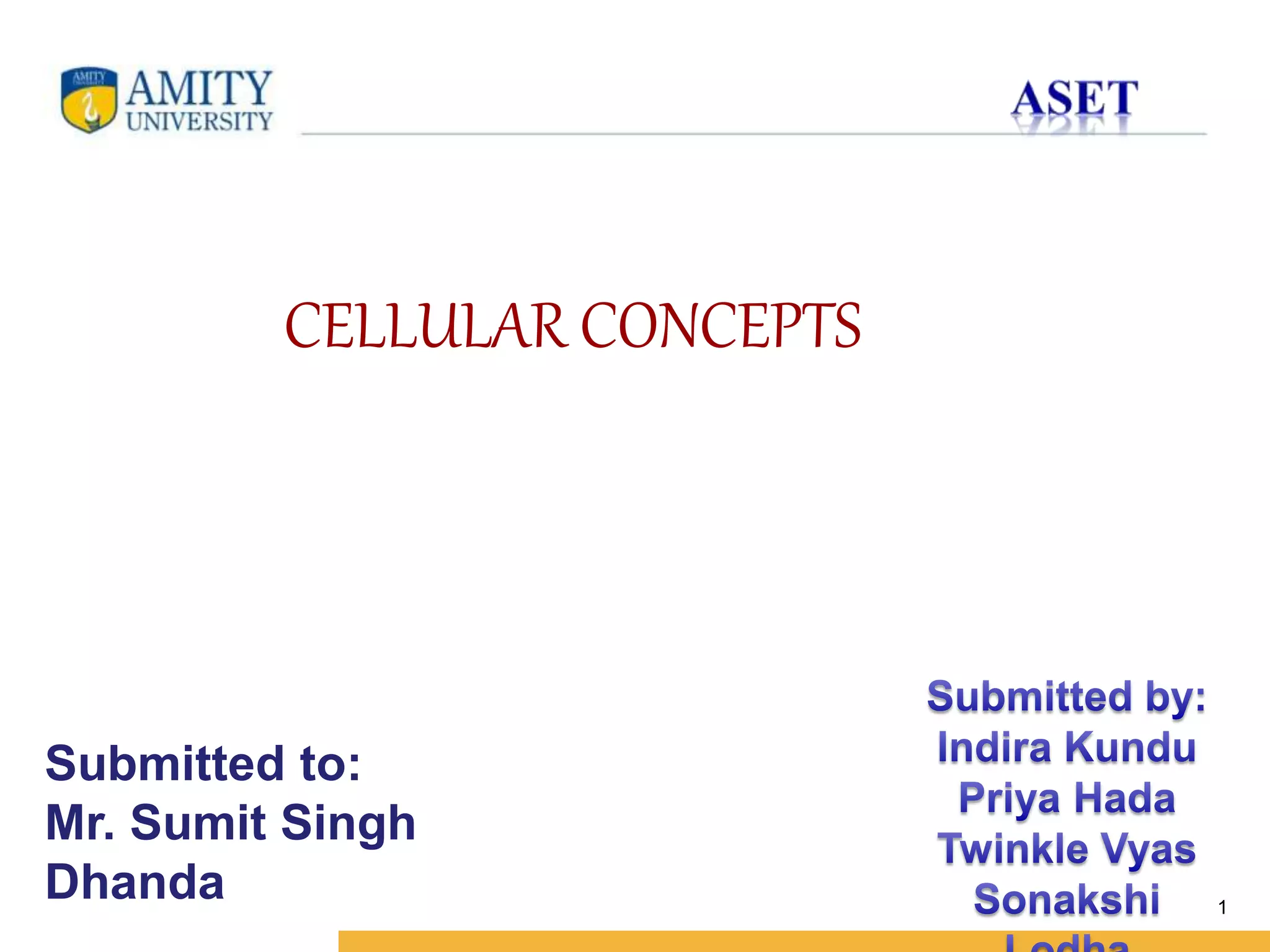 The document discusses key concepts in cellular network design including: