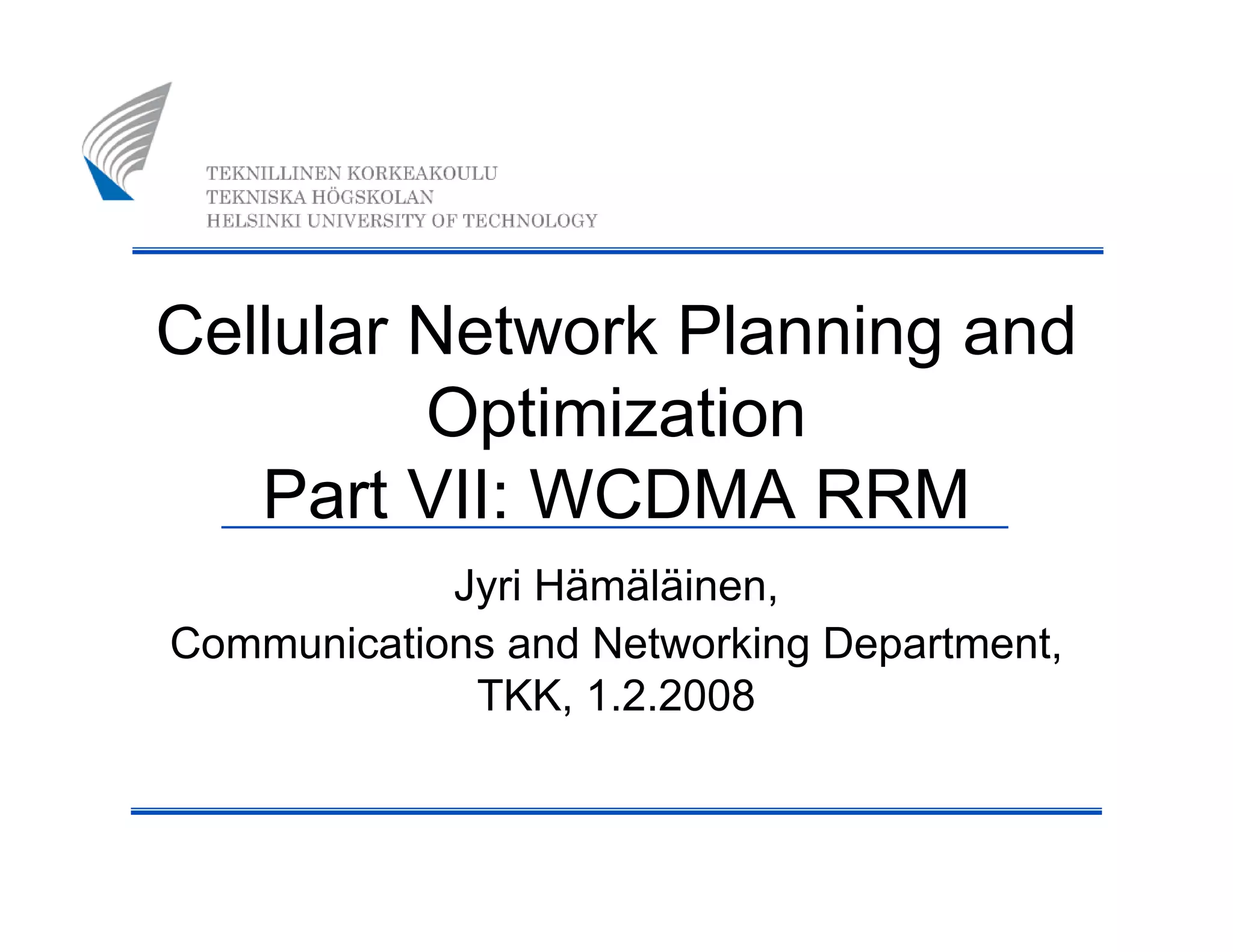 This document discusses cellular network planning and optimization, specifically for WCDMA radio resource management (RRM). It covers several key topics: