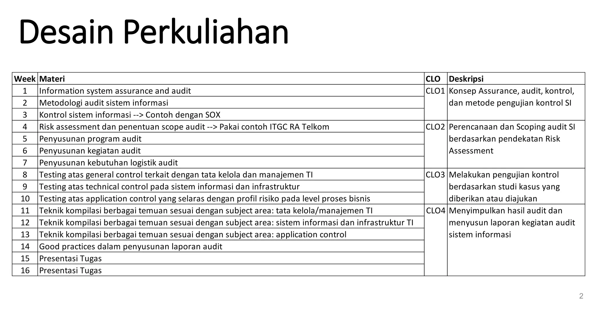 2. Terdapat 16 topik pertemuan yang membahas berbagai aspek terkait perencanaan, pelaksanaan, dan pelaporan hasil audit sistem informasi.