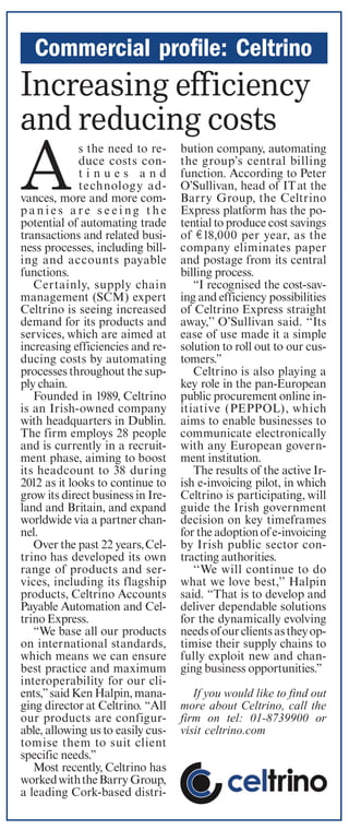 Irelands most successful e-billing company talk to the press about their philosophy and their supply chain successes.