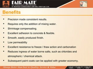 Cemscreed Fairing Coat is a high-strength, single component polymer modified repair mortar designed for filling blemishes in concrete surfaces, requiring only the addition of mixing water. It offers excellent adhesion, flexibility, shrinkage compensation, and low permeability, making it suitable as a preparatory treatment for protective coatings. Supplied in 20kg bags, a single bag covers approximately 16m2 at a thickness of 1mm.