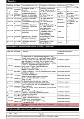 Palitha Siriwardana Arachchillage has applied for Chartered Engineer (CEng) registration. He currently works as an Electrical Engineer in the maintenance unit of the Lakvijaya Power Station in Sri Lanka for the Ceylon Electricity Board. He has over 25 years of experience in the energy sector and holds qualifications including a BTech in Engineering, postgraduate diplomas in power engineering and business management, and professional certifications. He is seeking registration to further his career and expertise in the field of power engineering.