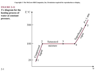 The document discusses properties of pure substances through figures and diagrams. It examines temperature-volume diagrams, pressure-volume diagrams, pressure-temperature diagrams, and pressure-volume-temperature surfaces for substances that contract or expand when freezing. Tables of properties for various substances are also referenced. The figures explore ideal gas behavior, equations of state, and constant-pressure specific heats for gases.
