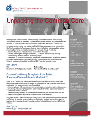 This document provides information about several professional development workshops on project-based learning (PBL) offered by the Educational Service Center of Central Ohio. The workshops include: