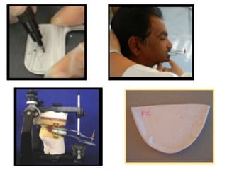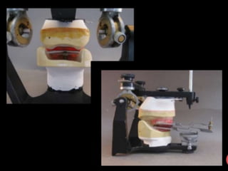 Centric relation is a maxillomandibular relationship where the condyles are positioned at the anterior-superior position against the posterior slopes of the articular eminences, allowing purely rotary movement. There are several theories regarding what determines centric relation, including muscle, ligament, osteofiber, and meniscus theories. It is important to record centric relation for complete dentures as it provides a reproducible reference position and orients the lower cast on the articulator. Common methods to record centric relation include interocclusal records, graphic tracings, and functional methods.