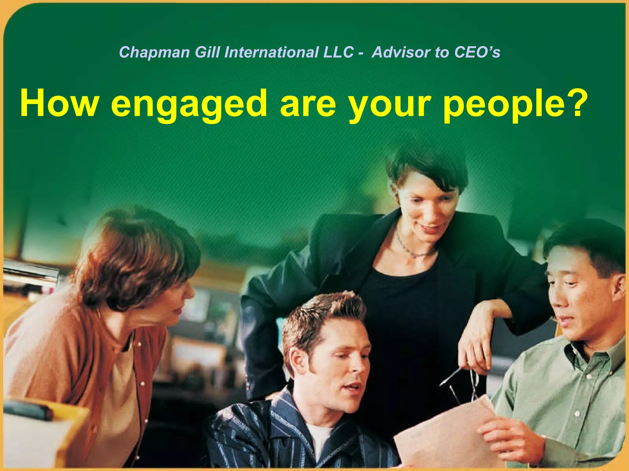 The document is a survey from Chapman Gill International LLC that assesses organizational performance across several areas for an organization's CEO. The survey contains 19 questions divided into 6 sections: organizational stress, teamwork, recruitment and training, communication, personal peak performance, and contact information. The CEO is asked to rate their level of agreement with statements about each area on a scale of 1 to 5. The survey aims to evaluate how engaged employees are and how effectively various processes, skills, and leadership are being utilized within the organization.